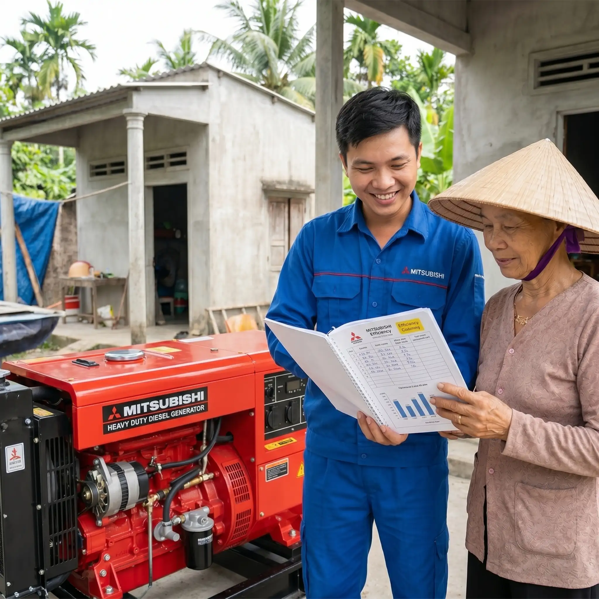 Nhiều máy phát điện Mitsubishi hoạt động hiệu quả hơn khi chạy ở khoảng 60–80% tải. Đây thường là vùng vừa đảm bảo hiệu suất vừa tránh lãng phí nhiên liệu.